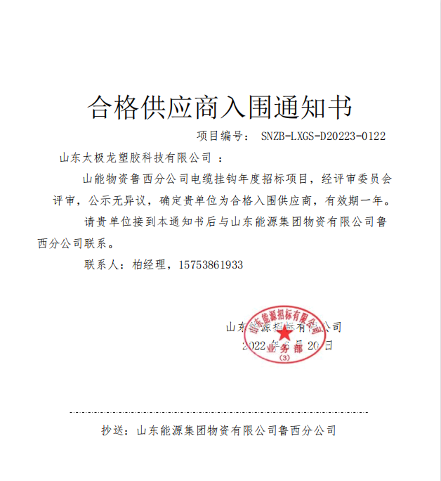 山東能源集團魯西礦業2024-2025年電纜掛鉤項目中標